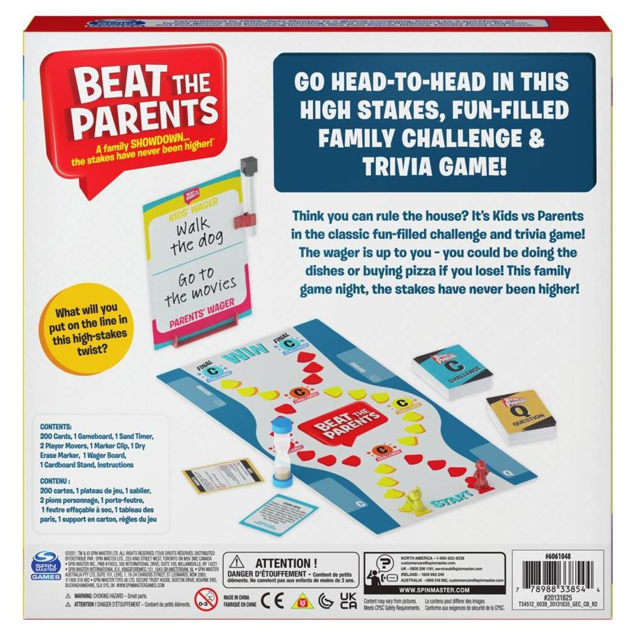 Beat the Parents is the ultimate living-room showdown: Kids vs. Parents in a fast, funny trivia race packed with silly challenges. Parents have to tackle questions about kid-world (good luck), while kids get quizzed on the stuff grown-ups “obviously” know. Answer right, move across the board, and brace yourself, because the next space might demand a mini challenge that turns your game night into a full-on family spectacle.