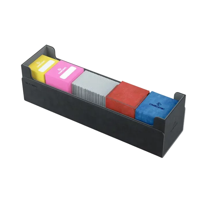 The Convertible design gives you easy access to your gear with a completely removable magnetic flap, and that flap can clip onto the bottom during play to save space at the table. A special locking mechanism and powerful magnets keep the case securely shut, even if it gets jostled or turned upside-down on the road. Finished with a premium Nexofyber+ exterior and a soft microfiber inner lining, it keeps your cardboard treasure protected while looking sharp doing it. It’s also compatible with most Gamegenic products and many other storage solutions on the market, making it a flexible choice for growing collections.