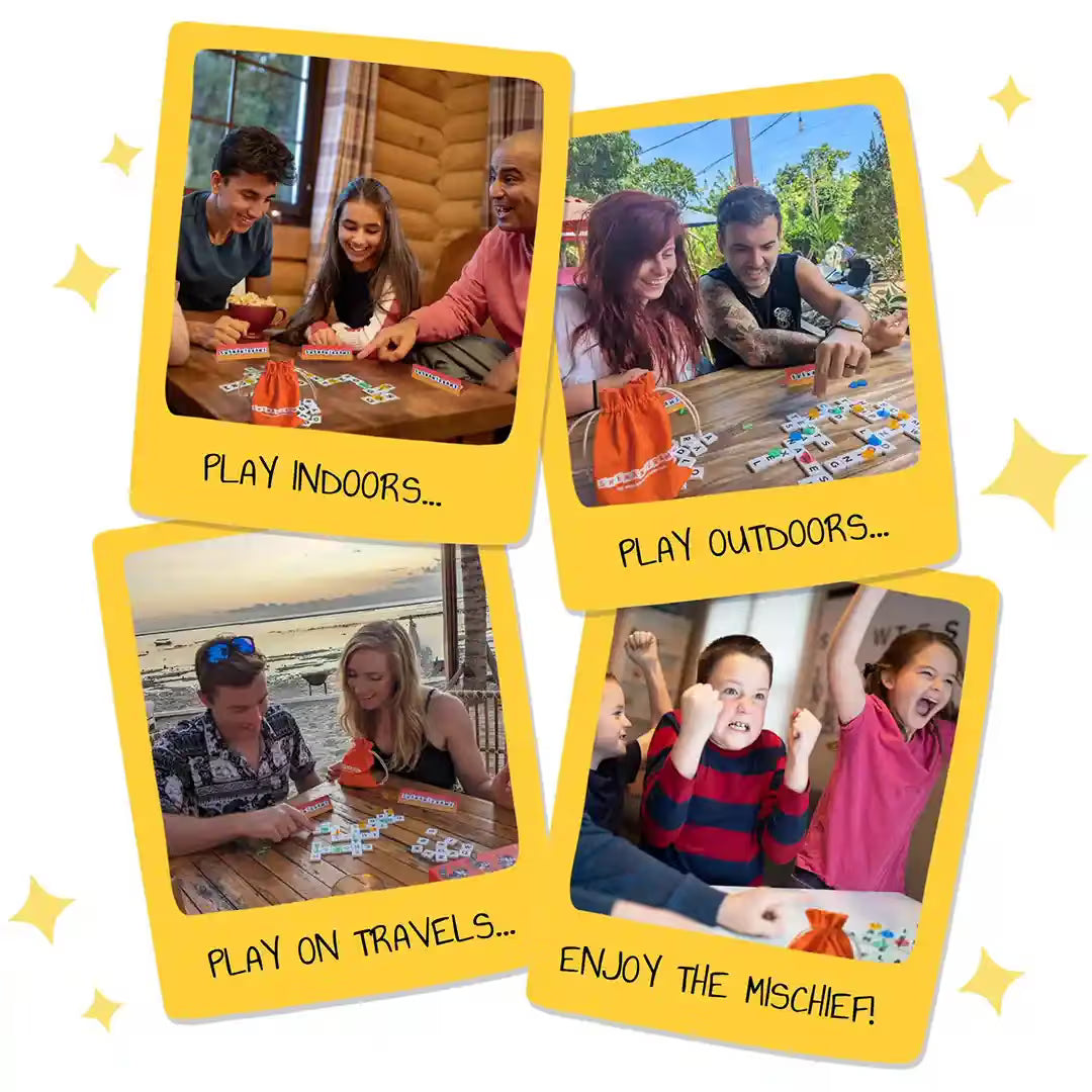 It’s a mega-mischievous twist on traditional word games... as you’ll be racing to build, tag and STEAL words using stealth, strategy and wordy wickedness!